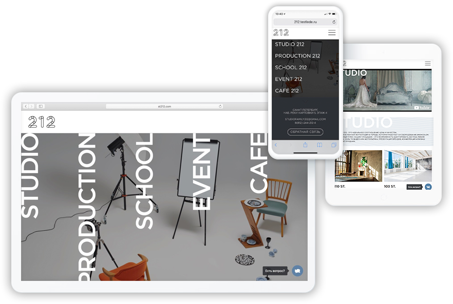 Разработать веб-сайт, отвечающий современным трендам. Разработать удобную структуру, вывести на первый план контент, создаваемый в студии, и рассказать обо всех услугах и направлениях деятельности Studio 212.