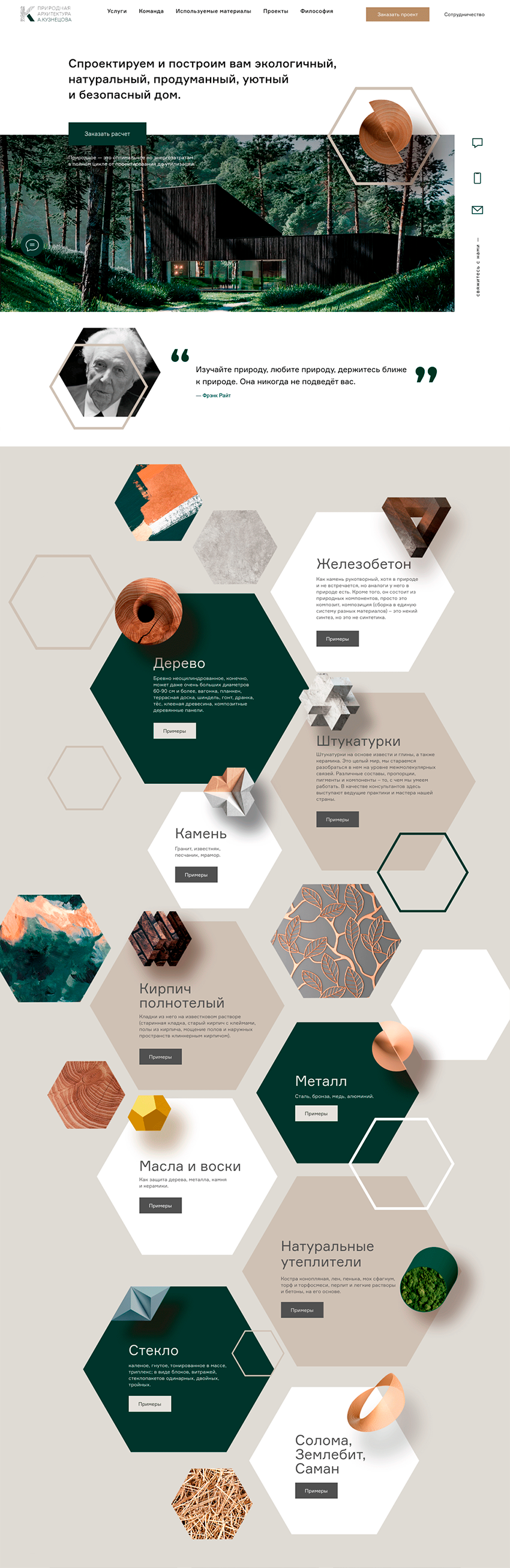 Природная архитектура А. Кузнецова – это команда специалистов, занимающаяся проектированием и строительством. Проекты выполняются по авторской методике в системе пропорционирования по Золотому сечению и принципам резонансов.
