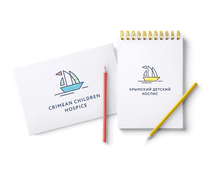 Основная изюминка нашего логотипа — интерактивность. Чтобы заинтересовать людей, мы придумали использовать контурный корабль в качестве раскраски. Предложив возможность по-своему раскрасить знак (например, на открытке) мы построили коммуникацию между хосписом и неравнодушным человеком.