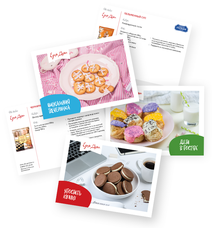 Используя готовую продукцию «Едим дома» можно приготовить большое количество блюд. Открытки с рецептами помогут сэкономить время и порадовать своих близких.
