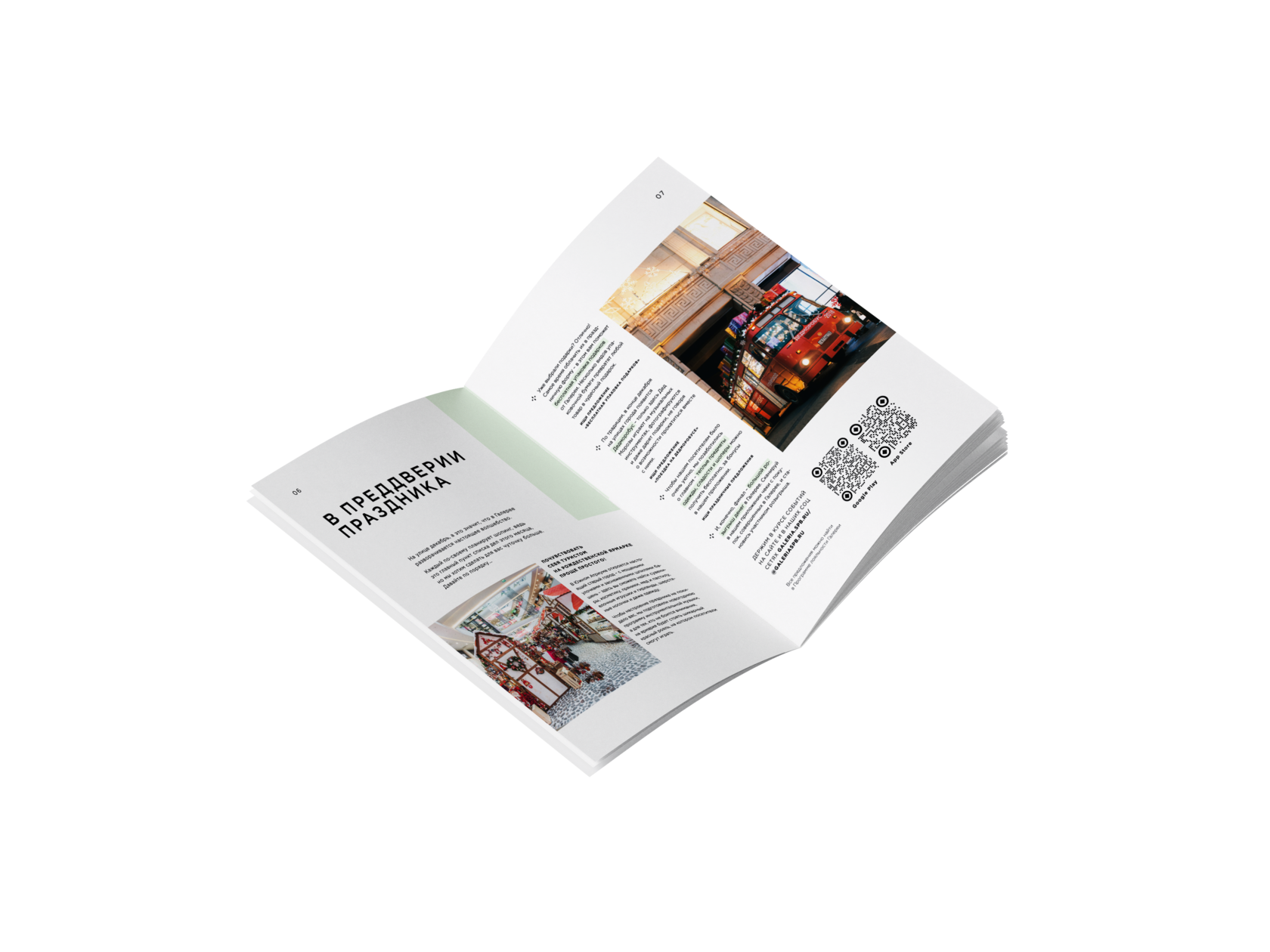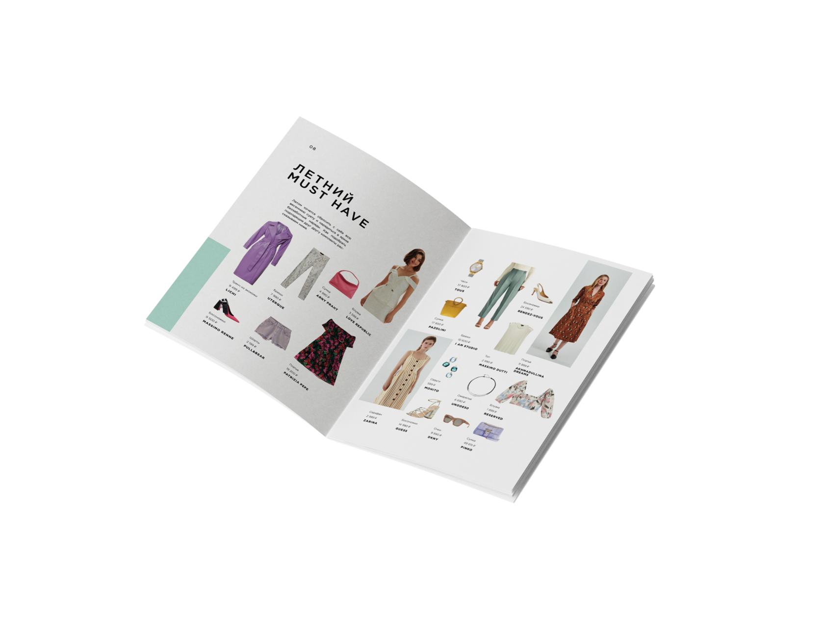 Разработка дизайна и верстка ежеквартального журнала по сезонам: зима, весна, лето, осень. Журнал в среднем состоит из 60 полос и рассказывает об актуальных новостях торгового центра, публикует актуальные сезонные статьи и рассказывает о новых коллекциях.