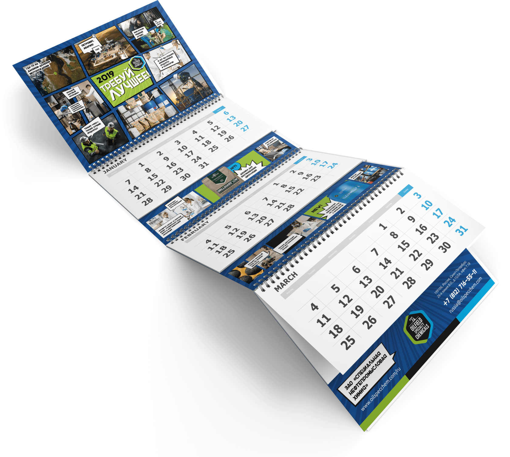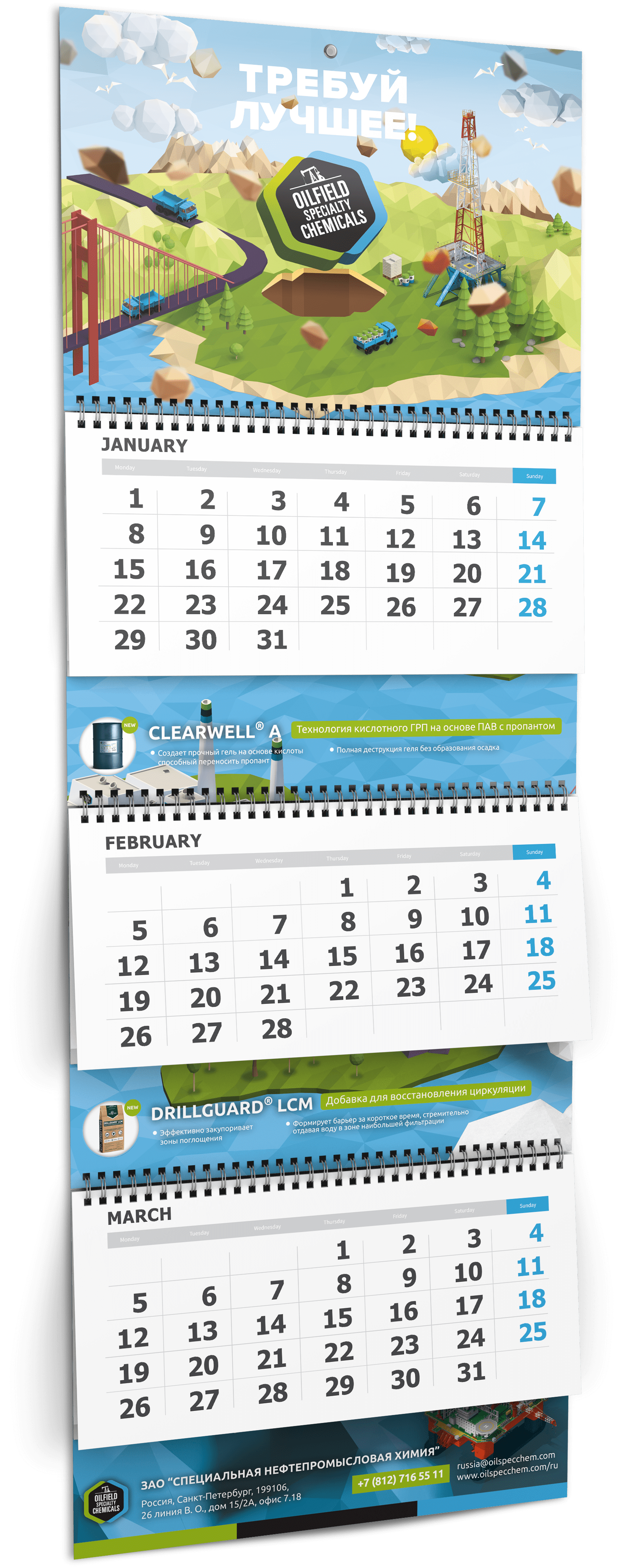 Разработать иллюстрации для корпоративных календарей 2016, 2018 и 2019 года.