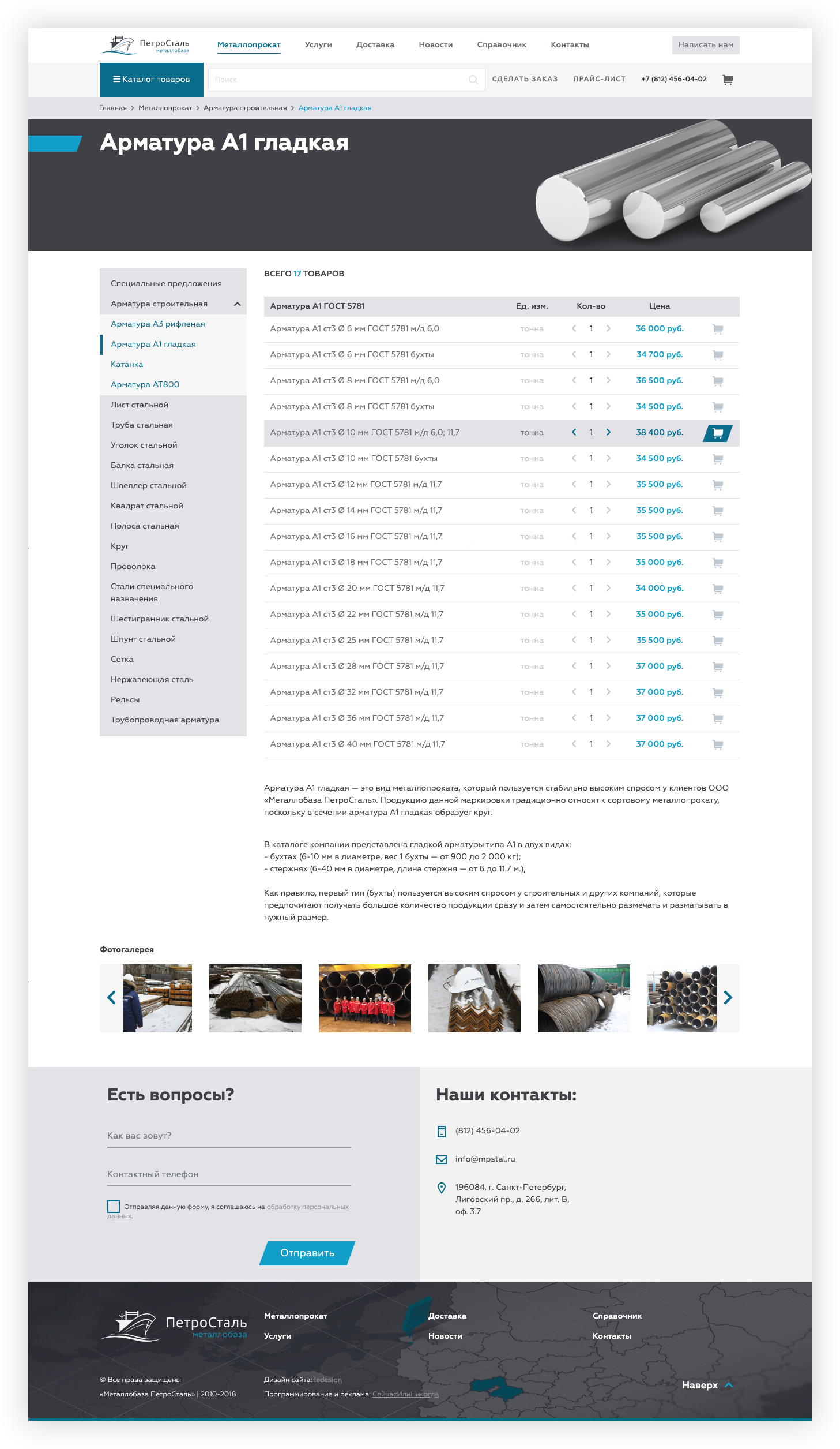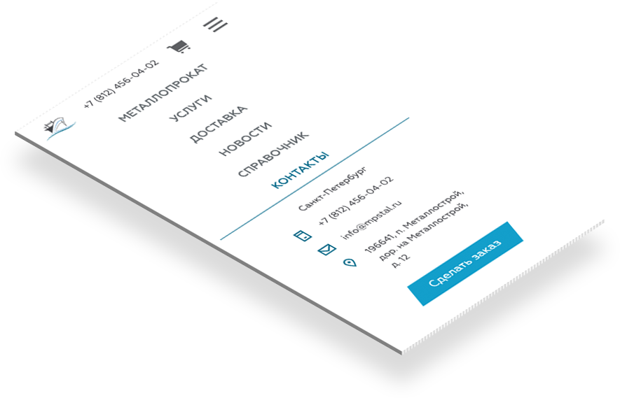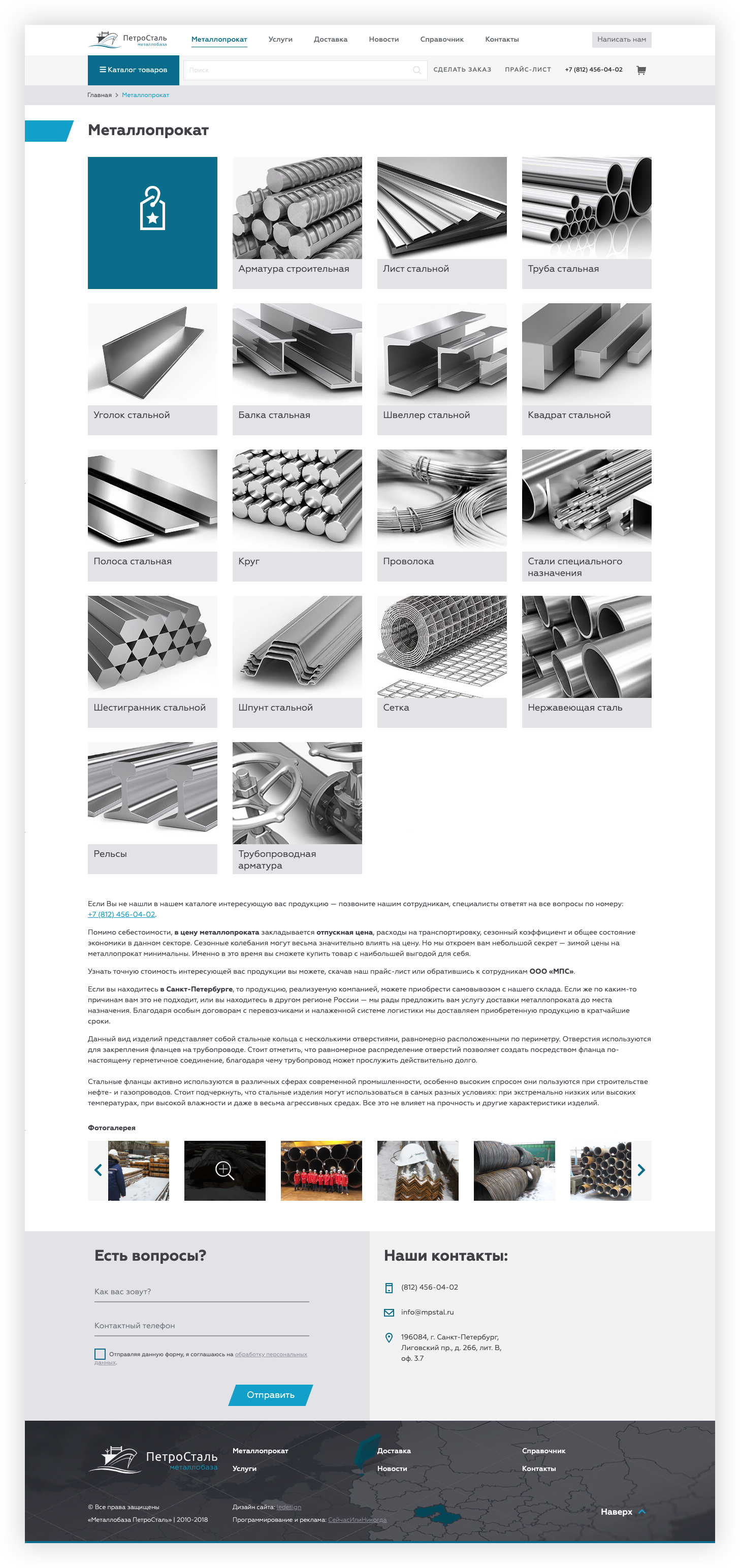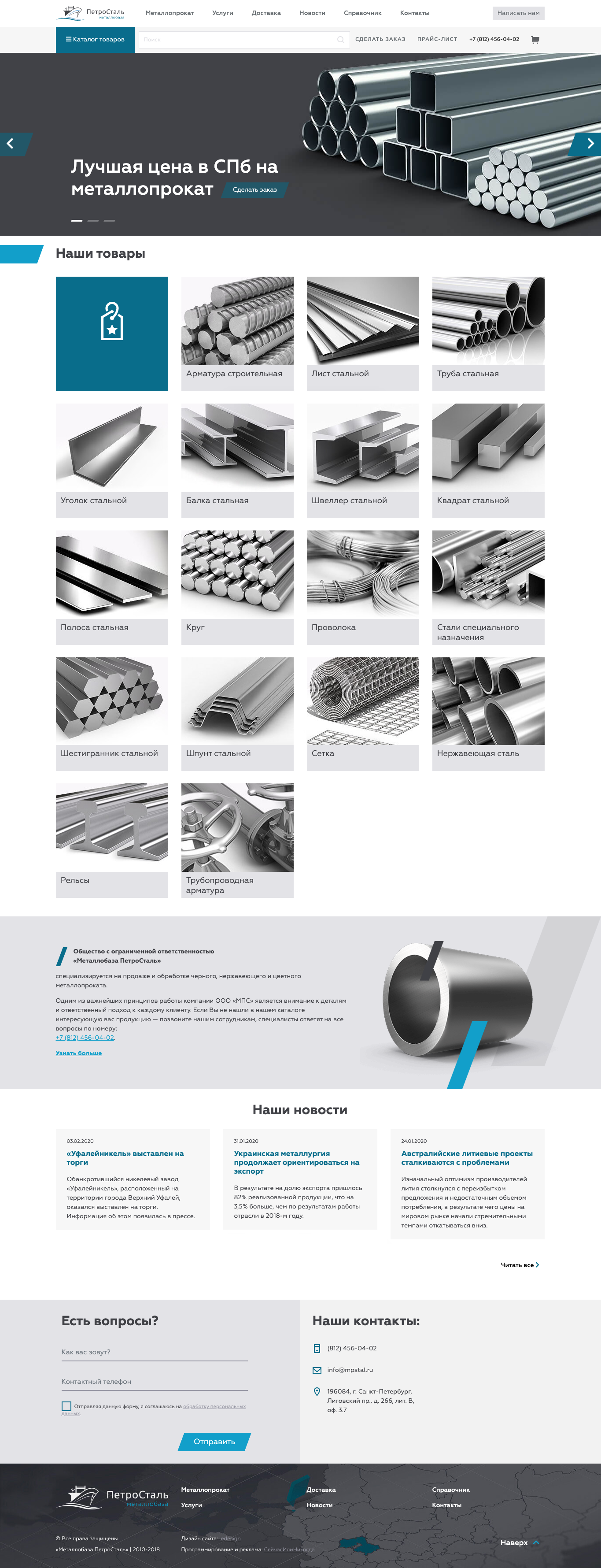 Сделать современный корпоративный сайт компании, позволяющий легко найти необходимую металлопродукцию и оформить на нее заказ.