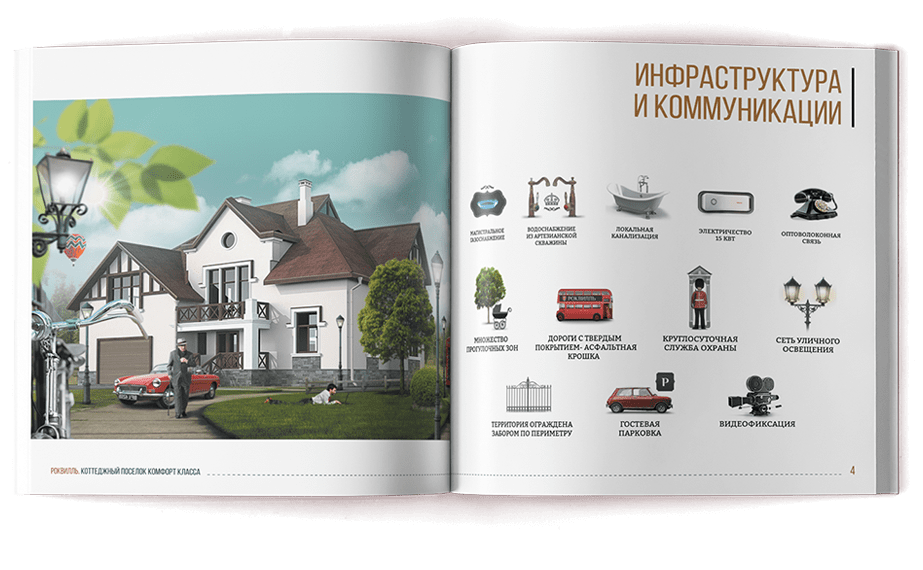 Вторая рекламная кампания строилась на возможности приобрести коттедж или участок в английском поселке «РОКВИЛЛЬ».