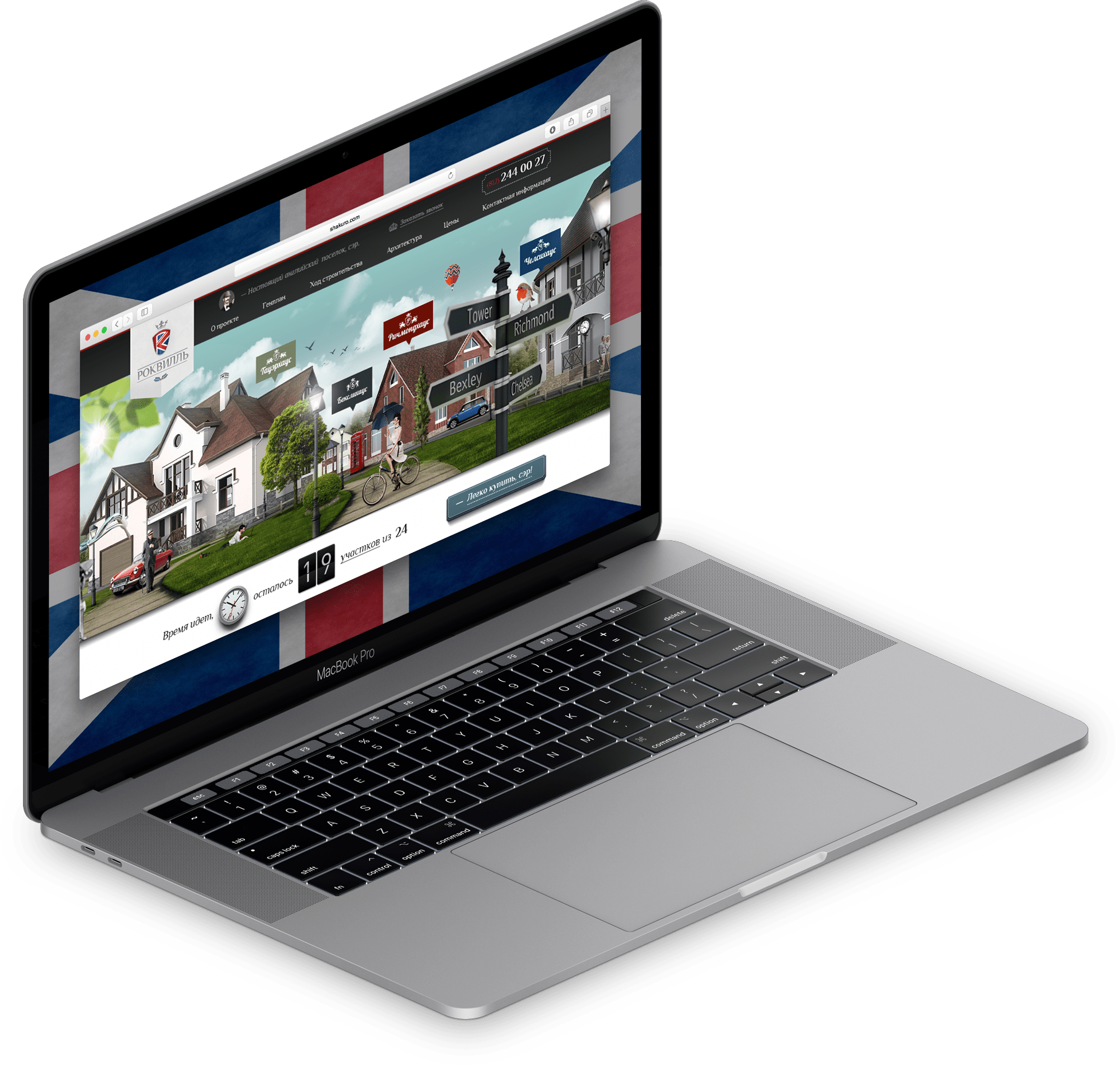 Первая рекламная кампания строилась на ярких имиджах, передающих атмосферу Англии в коттеджном поселке.