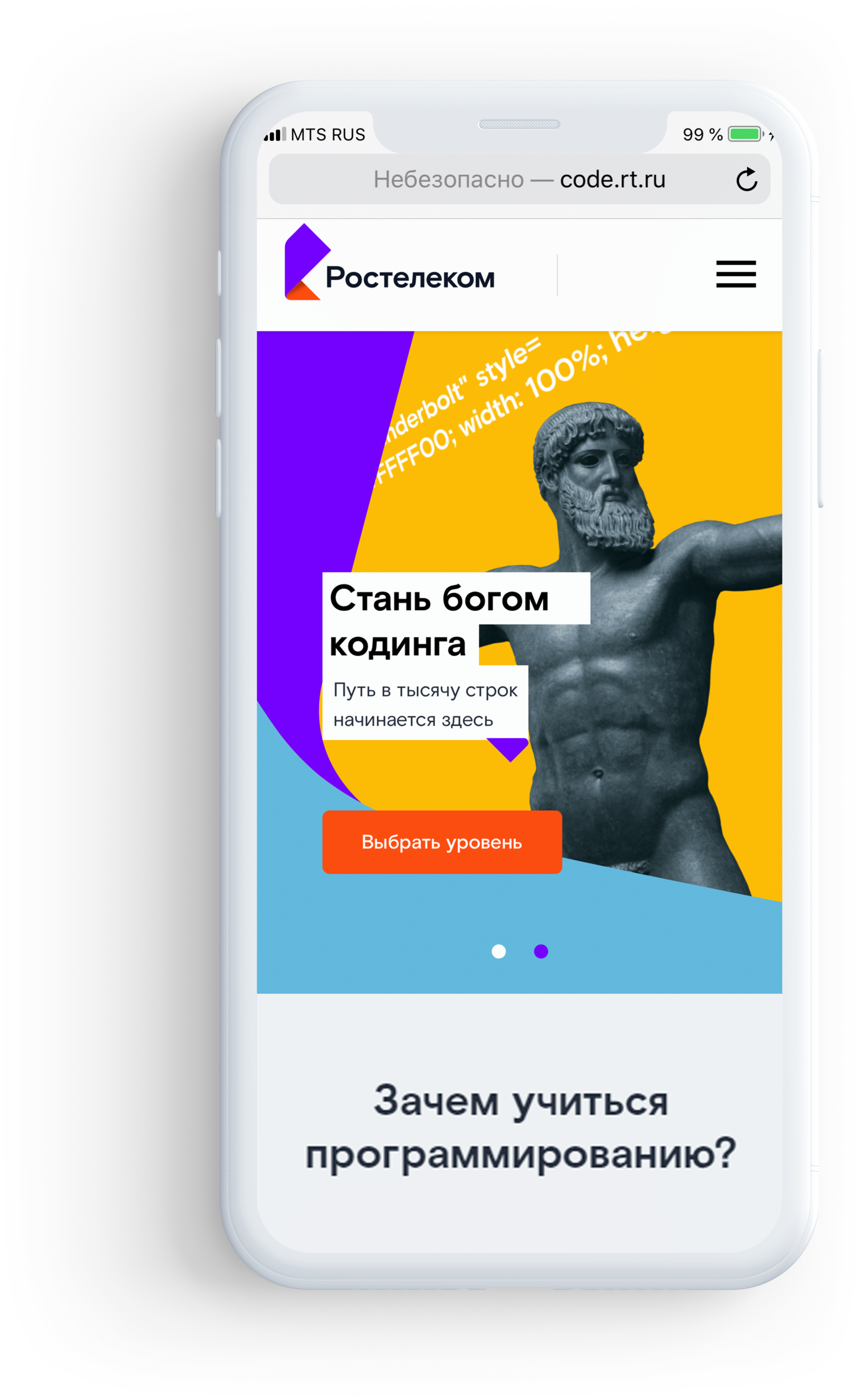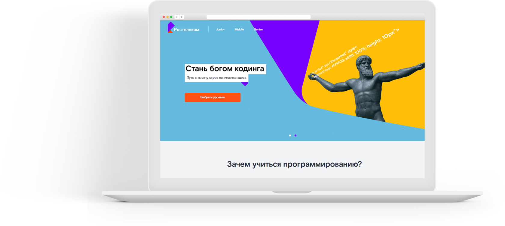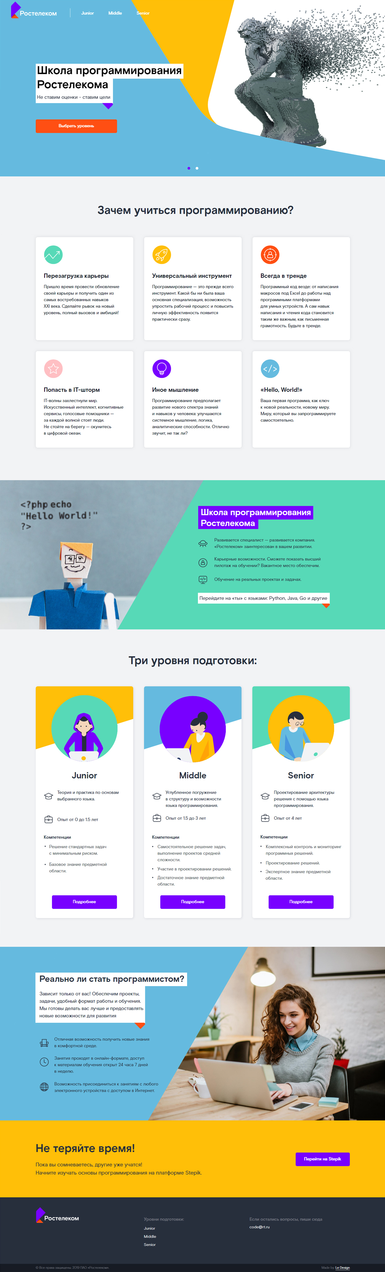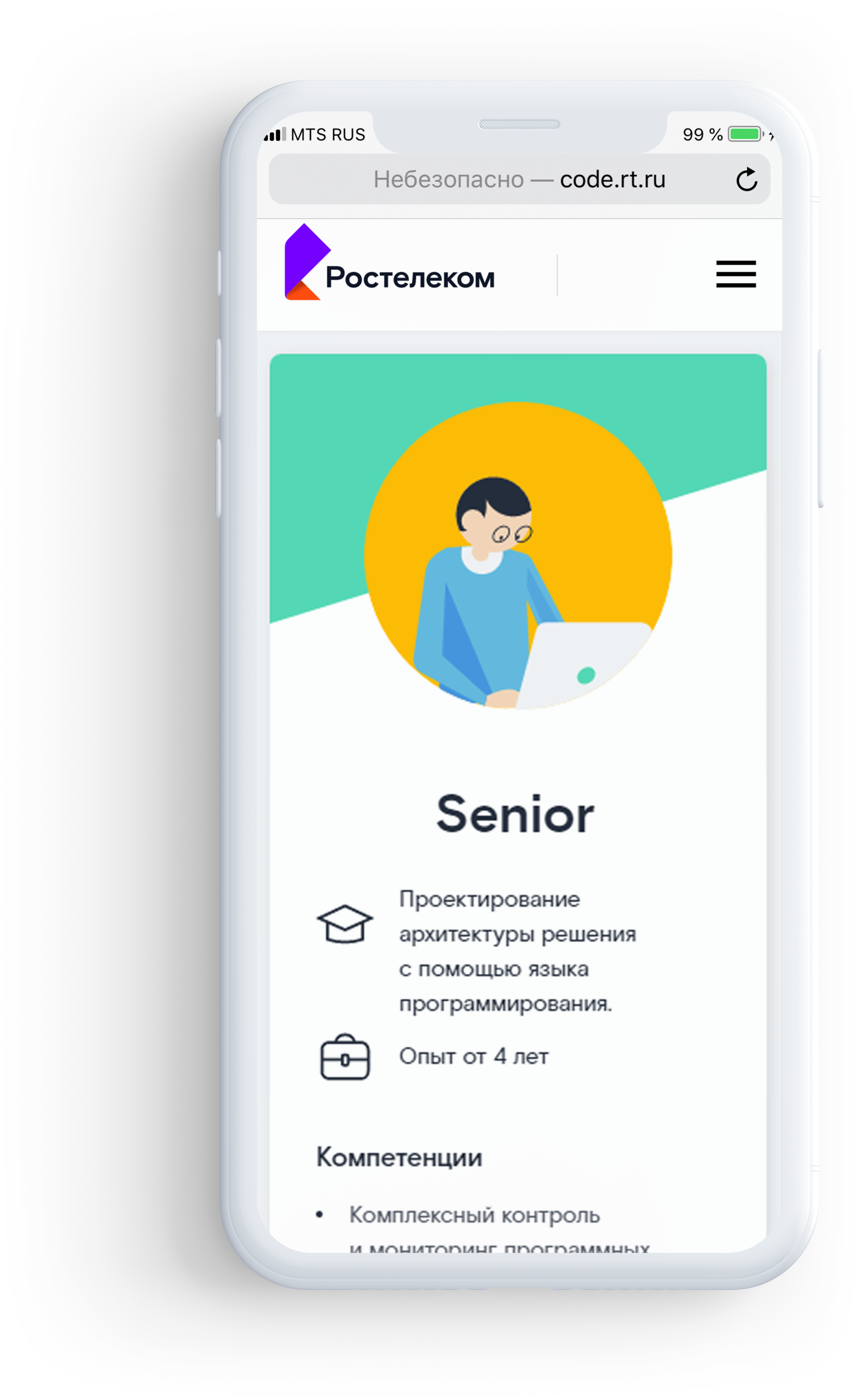 Школа программирования Ростелекома — это внутреннее направление, где сотрудники компании могут переквалифицироваться и обучиться новой профессии. Для определения уровня знаний по программированию можно прямо на сайте пройти тест и оставить заявку на обучение.
