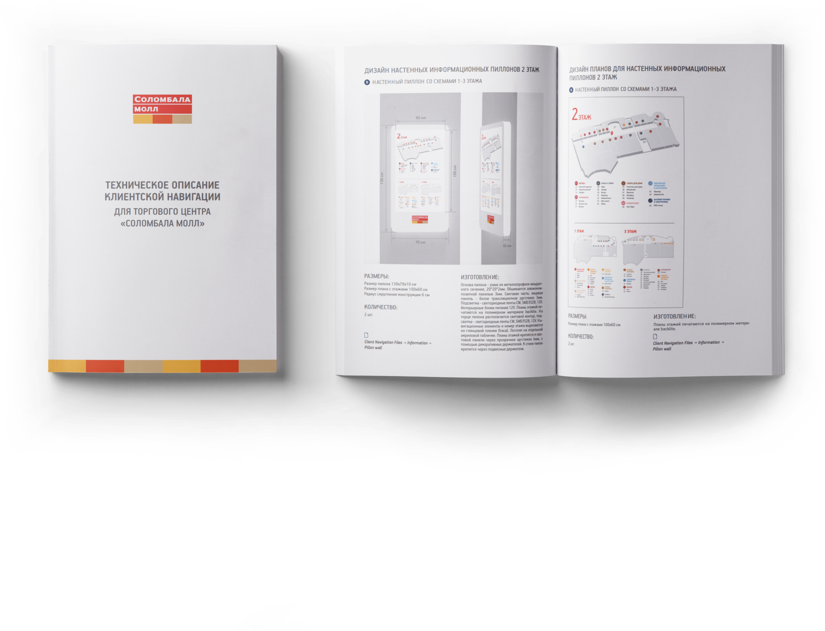 Все носители Клиентской и Сервисной навигации описаны в технической документации. В них прорисованы планы размещения всех носителей, их технические описания, чертежи и ссылки на макеты.
