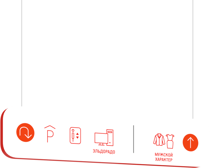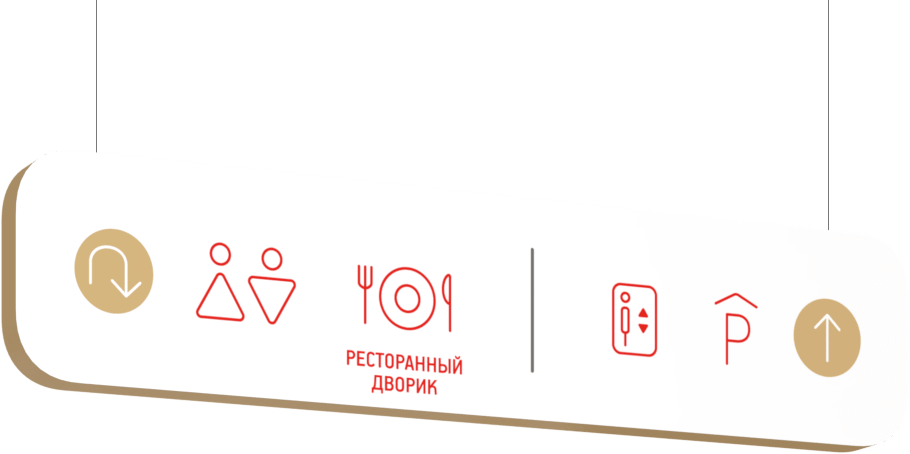 Разработать навигационную систему для клиентской и сервисной зон торгового центра. В рамках навигации продумать связь между визуально разделенными частями торгового центра.