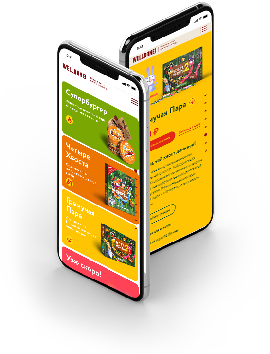 Разработать привлекательный лендинг на Tilda с ассортиментом игр Welldone. Реализовать различные системы оплаты, доработав стандартный функционал конструктора. Особое внимание уделить анимации на сайте: создать иллюстрации с героями игр и модели коробок в открытом виде.